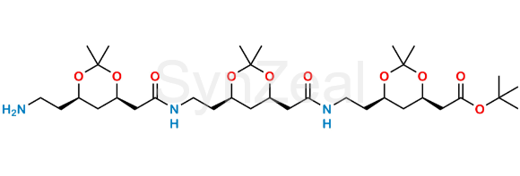 Atorvastatin Triamino Impurity is chemically Tert-butyl 2-((4R,6R)-6-(2-(2-((4R,6R)-6-(2-(2-((4R,6R)-6-(2-aminoethyl)-2,2-dimethyl-1,3-dioxan-4-yl)acetamido)ethyl)-2,2-dimethyl-1,3-dioxan-4-yl)acetamido)ethyl)-2,2-dimethyl-1,3-dioxan-4-yl)acetate. Atorvastatin Triamino Impurity is supplied with detailed characterization data compliant with regulatory guideline. Atorvastatin Triamino Impurity can be used for the analytical method development, method validation (AMV), Quality Controlled (QC) application for Abbreviated New Drug Application (ANDA) or during commercial production of Atorvastatin.