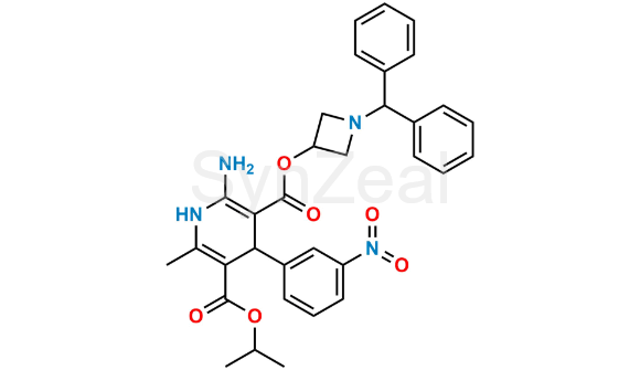 Nome Químico: 3-(1-benzhydrylazetidin-3-yl) 5-isopropyl 2-amino-6-methyl-4-(3-nitrophenyl)-1,4-dihydropyridine-3,5-dicarboxylate