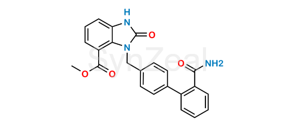 Azilsartan Impurity O is chemically Methyl 3-((2'-carbamoyl-[1,1'-biphenyl]-4-yl)methyl)-2-oxo-2,3-dihydro-1H-benzo[d]imidazole-4-carboxylate. Azilsartan Impurity O is supplied with detailed characterization data compliant with regulatory guideline. Azilsartan Impurity O can be used for the analytical method development, method validation (AMV), Quality Controlled (QC) application for Abbreviated New Drug Application (ANDA) or during commercial production of Azilsartan.