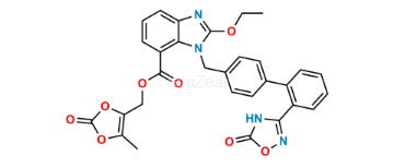 Nome Químico: (5-Methyl-2-oxo-1,3-dioxol-4-yl)methyl 2-ethoxy-1-((2'-(5-(2-ethoxy-1-((2'-(5-oxo-4,5-dihydro-1,2,4-oxadiazol-3-yl)-[1,1'-biphenyl]-4-yl)methyl)-1H-benzo[d]imidazol-7-yl)-1,2,4-oxadiazol-3-yl)-[1,1'-biphenyl]-4-yl)methyl)-1H-benzo[d]imidazole-7-carboxylate