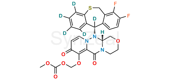 Baloxavir Marboxil D5 is chemically (((R)-12-((S)-7,8-difluoro-6,11-dihydrodibenzo[b,e]thiepin-11-yl-1,2,3,4,11-d5)-6,8-dioxo-3,4,6,8,12,12a-hexahydro-1H-[1,4]oxazino[3,4-c]pyrido[2,1-f][1,2,4]triazin-7-yl)oxy)methyl methyl carbonate. Baloxavir Marboxil D5 is supplied with detailed characterization data compliant with regulatory guideline. Baloxavir Marboxil D5 can be used for the analytical method development, method validation (AMV), Quality Controlled (QC) application for Abbreviated New Drug Application (ANDA) or during commercial production of Baloxavir marboxil.
