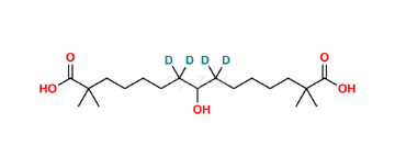 Bempedoic Acid is chemically 8-Hydroxy-2,2,14,14-tetramethylpentadecanedioic acid. Bempedoic Acid is supplied with detailed characterization data compliant with regulatory guideline. Bempedoic Acid can be used for the analytical method development, method validation (AMV), Quality Controlled (QC) application for Abbreviated New Drug Application (ANDA) or during commercial production of Bempedoic Acid.