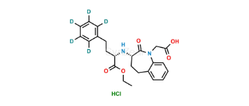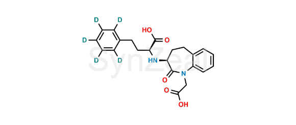 Benazeprilat d5 is chemically (S)-2-(((S)-1-(Carboxymethyl)-2-oxo-2,3,4,5-tetrahydro-1H-benzo[b]azepin-3-yl)amino)-4-(phenyl-d5)butanoic acid. Benazeprilat d5 is supplied with detailed characterization data compliant with regulatory guideline. Benazeprilat d5 can be used for the analytical method development, method validation (AMV), Quality Controlled (QC) application for Abbreviated New Drug Application (ANDA) or during commercial production of Benazepril hydrochloride.