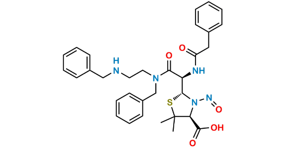 Nome Químico: (2R,4S)-2-((R)-2-(Benzyl(2-(benzylamino)ethyl)amino)-2-oxo-1-(2-phenylacetamido)ethyl)-5,5-dimethyl-3-nitrosothiazolidine-4-carboxylic acid