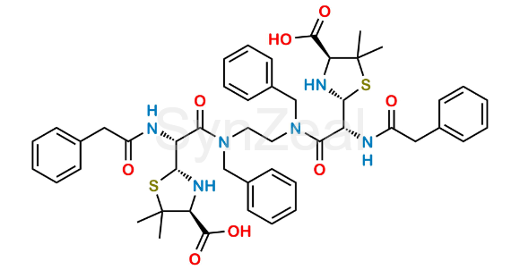 Benzathine Benzylpenicillin EP Impurity K is chemically (2R,2'R,4S,4'S)-2,2'-[(4R,11R)-6,9-dibenzyl-2,5,10,13-tetraoxo-1,14-diphenyl-3,6,9,12-tetraazatetradecane-4,11-diyl]bis(5,5-dimethyl-1,3-thiazolidine-4-carboxylic acid).. Benzathine Benzylpenicillin EP Impurity K is supplied with detailed characterization data compliant with regulatory guideline. Benzathine Benzylpenicillin EP Impurity K can be used for the analytical method development, method validation (AMV), Quality Controlled (QC) application for Abbreviated New Drug Application (ANDA) or during commercial production of Penicillin.