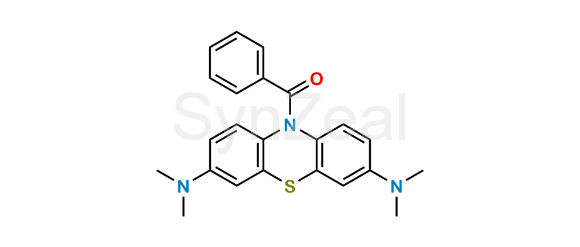 Benzoyl Leuco Methylene Blue is chemically (3,7-Bis(dimethylamino)-10H-phenothiazin-10-yl)(phenyl)methanone. Benzoyl Leuco Methylene Blue is supplied with detailed characterization data compliant with regulatory guideline. Benzoyl Leuco Methylene Blue can be used for the analytical method development, method validation (AMV), Quality Controlled (QC) application for Abbreviated New Drug Application (ANDA) or during commercial production of Methylene Blue.