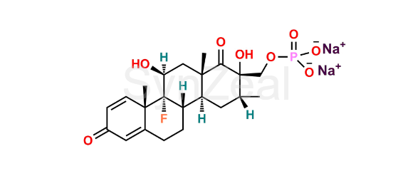 Betamethasone Sodium Phosphate Impurity E is chemically ((2S,3R,4aS,4bS,10aS,10bR,11S,12aS)-10b-Fluoro-2,11-dihydroxy-3,10a,12a-trimethyl-1,8-dioxo-1,2,3,4,4a,4b,5,6,8,10a,10b,11,12,12a-tetradecahydrochrysen-2-yl)methyl disodium phosphate. Betamethasone Sodium Phosphate Impurity E is supplied with detailed characterization data compliant with regulatory guideline. Betamethasone Sodium Phosphate Impurity E can be used for the analytical method development, method validation (AMV), Quality Controlled (QC) application for Abbreviated New Drug Application (ANDA) or during commercial production of Betamethasone Sodium Phosphate.