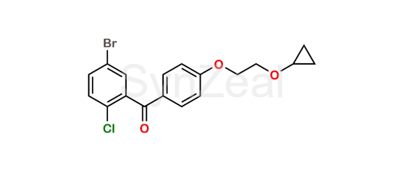 Bexagliflozin Impurity 5 is chemically (5-Bromo-2-chlorophenyl)(4-(2-cyclopropoxyethoxy)phenyl)methanone. Bexagliflozin Impurity 5 is supplied with detailed characterization data compliant with regulatory guideline. Bexagliflozin Impurity 5 can be used for the analytical method development, method validation (AMV), Quality Controlled (QC) application for Abbreviated New Drug Application (ANDA) or during commercial production of Bexagliflozin.
