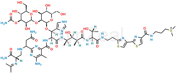 Nome Químico: (3-(2'-((3S,6R,7S,8S,11S)-1-(6-Amino-2-(3-amino-1-(((S)-3-amino-3-oxo-2-(propan-2-ylideneamino)propyl)amino)-3-oxopropyl)-5-methylpyrimidin-4-yl)-3-((1R)-(((2R,3S,4S,5S,6S)-3-(((3S,4S,5R,6R)-4-(carbamoyloxy)-3,5-dihydroxy-6-(hydroxymethyl)tetrahydro-2H-pyran-2-yl)oxy)-4,5-dihydroxy-6-(hydroxymethyl)tetrahydro-2H-pyran-2-yl)oxy)(1H-imidazol-4-yl)methyl)-7-hydroxy-11-((R)-1-hydroxyethyl)-6,8-dimethyl-1,4,9,12-tetraoxo-2,5,10,13-tetraazapentadecan-15-yl)-[2,4'-bithiazole]-4-carboxamido)propyl)dimethylsulfonium
