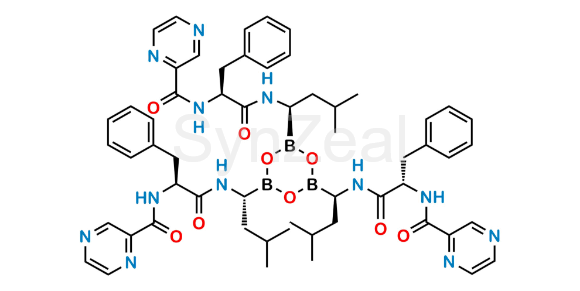Nome Químico: N,N',N''-((2S,2'S,2''S)-(((1R,1'R,1''R)-(1,3,5,2,4,6-Trioxatriborinane-2,4,6-triyl)tris(3-methylbutane-1,1-diyl))tris(azanediyl))tris(1-oxo-3-phenylpropane-1,2-diyl))tris(pyrazine-2-carboxamide)