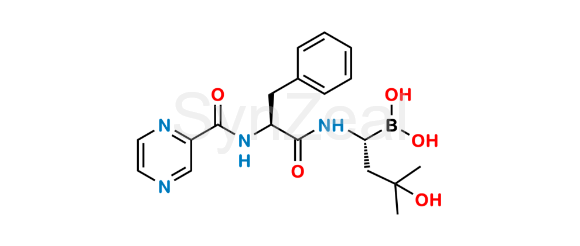 Bortezomib Impurity 6 is chemically ((R)-3-Hydroxy-3-methyl-1-((S)-3-phenyl-2-(pyrazine-2-carboxamido)propanamido)butyl)boronic acid. Bortezomib Impurity 6 is supplied with detailed characterization data compliant with regulatory guideline. Bortezomib Impurity 6 can be used for the analytical method development, method validation (AMV), Quality Controlled (QC) application for Abbreviated New Drug Application (ANDA) or during commercial production of Bortezomib.