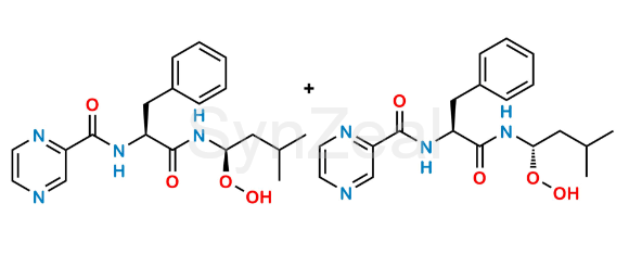Bortezomib R and S Hydroperoxide is chemically N-((S)-1-(((R)-1-hydroperoxy-3-methylbutyl)amino)-1-oxo-3-phenylpropan-2-yl)pyrazine-2-carboxamide compound with N-((S)-1-(((S)-1-hydroperoxy-3-methylbutyl)amino)-1-oxo-3-phenylpropan-2-yl)pyrazine-2-carboxamide (1:1). Bortezomib R and S Hydroperoxide is supplied with detailed characterization data compliant with regulatory guideline. Bortezomib R and S Hydroperoxide can be used for the analytical method development, method validation (AMV), Quality Controlled (QC) application for Abbreviated New Drug Application (ANDA) or during commercial production of Bortezomib.