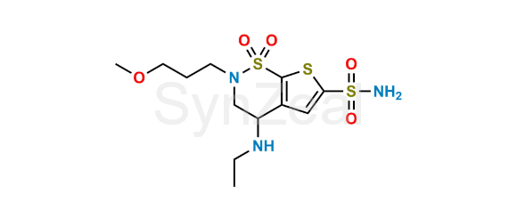 Brinzolamide Impurity 13 is chemically 4-(Ethylamino)-2-(3-methoxypropyl)-3,4-dihydro-2H-thieno[3,2-e][1,2]thiazine-6-sulfonamide 1,1-dioxide. Brinzolamide Impurity 13 is supplied with detailed characterization data compliant with regulatory guideline. Brinzolamide Impurity 13 can be used for the analytical method development, method validation (AMV), Quality Controlled (QC) application for Abbreviated New Drug Application (ANDA) or during commercial production of Brinzolamide.