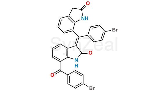 Bromfenac Impurity 11 is chemically (E)-7-(4-bromobenzoyl)-3-((4-bromophenyl)(2-oxoindolin-7-yl)methylene)indolin-2-one. Bromfenac Impurity 11 is supplied with detailed characterization data compliant with regulatory guideline. Bromfenac Impurity 11 can be used for the analytical method development, method validation (AMV), Quality Controlled (QC) application for Abbreviated New Drug Application (ANDA) or during commercial production of Bromfenac.