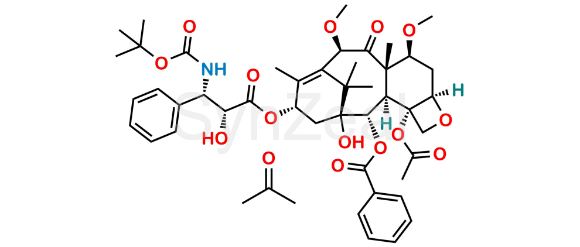 Nome Químico: (2aR,4S,4aS,6R,9S,11S,12S,12aR,12bS)-12b-Acetoxy-9-(((2R,3S)-3-((tert-butoxycarbonyl)amino)-2-hydroxy-3-phenylpropanoyl)oxy)-11-hydroxy-4,6-dimethoxy-4a,8,13,13-tetramethyl-5-oxo-2a,3,4,4a,5,6,9,10,11,12,12a,12b-dodecahydro-1H-7,11-methanocyclodeca[3,4]benzo[1,2-b]oxet-12-yl benzoate compound with propan-2-one (1:1)
