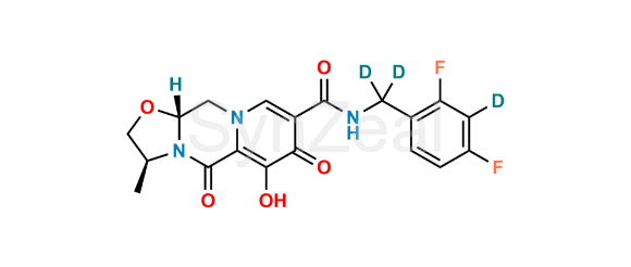 Cabotegravir D3 (Possibility 1) is chemically (3S,11aR)-N-((2,4-difluorophenyl-3-d)methyl-d2)-6-hydroxy-3-methyl-5,7-dioxo-2,3,5,7,11,11a-hexahydrooxazolo[3,2-a]pyrido[1,2-d]pyrazine-8-carboxamide. Cabotegravir D3 (Possibility 1) is supplied with detailed characterization data compliant with regulatory guideline. Cabotegravir D3 (Possibility 1) can be used for the analytical method development, method validation (AMV), Quality Controlled (QC) application for Abbreviated New Drug Application (ANDA) or during commercial production of Cabotegravir.