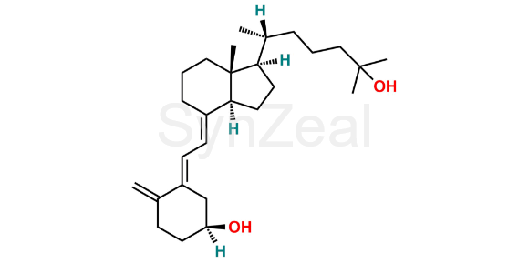 Calcifediol EP Impurity D is chemically (3S,5E,7E)-9,10-secocholesta-5,7,10(19)-triene-3,25-diol (as per EP). Calcifediol EP Impurity D is supplied with detailed characterization data compliant with regulatory guideline. Calcifediol EP Impurity D can be used for the analytical method development, method validation (AMV), Quality Controlled (QC) application for Abbreviated New Drug Application (ANDA) or during commercial production of Calcifediol.