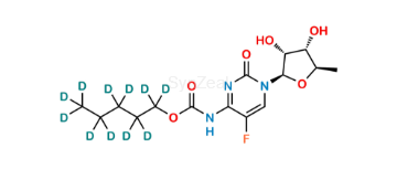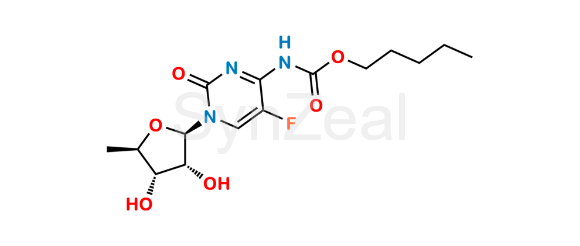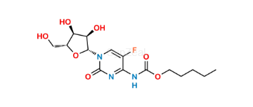 Nome Químico: Pentyl [1-(5-deoxy-β-D-ribofuranosyl)-5-fluoro-2-oxo-1,2-dihydropyrimidin-4-yl]carbamate (as per EP) ; Pentyl 1-(5-deoxy-β-d-ribofuranosyl)-5-fluoro-1,2-dihydro-2-oxo-4-pyrimidinecarbamate (as per USP)