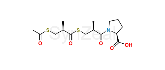 Nome Químico: (2S)-1-[(2S)-3-[[(2R)-3-(acetylsulfanyl)-2-methylpropanoyl]sulfanyl]-2-methylpropanoyl]pyrrolidine-2-carboxylicacid (as per EP)