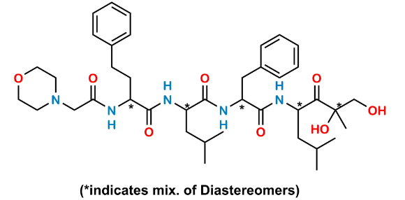 Nome Químico: N-(1-((1,2-dihydroxy-2,6-dimethyl-3-oxoheptan-4-yl)amino)-1-oxo-3-phenylpropan-2-yl)-4-methyl-2-(2-(2-morpholinoacetamido)-4-phenylbutanamido)pentanamide