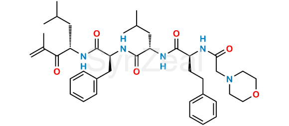 Carfilzomib Impurity 8 (SSSS) is chemically (S)-N-((S)-1-(((S)-2,6-dimethyl-3-oxohept-1-en-4-yl)amino)-1-oxo-3-phenylpropan-2-yl)-4-methyl-2-((S)-2-(2-morpholinoacetamido)-4-phenylbutanamido)pentanamide. Carfilzomib Impurity 8 (SSSS) is supplied with detailed characterization data compliant with regulatory guideline. Carfilzomib Impurity 8 (SSSS) can be used for the analytical method development, method validation (AMV), Quality Controlled (QC) application for Abbreviated New Drug Application (ANDA) or during commercial production of Carfilzomib.