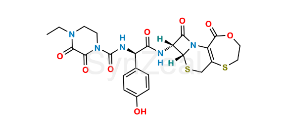 Nome Químico: N-((R)-2-(((7aR,8R)-1,9-dioxo-1,3,4,6,7a,8-Hexahydro-9H-azeto[2,1-b][1,4]oxathiepino[6,5-d][1,3]thiazin-8-yl)amino)-1-(4-hydroxyphenyl)-2-oxoethyl)-4-ethyl-2,3-dioxopiperazine-1-carboxamide