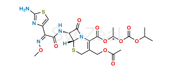 Nome Químico: (1RS)-1-[[(1-Methylethoxy)carbonyl]oxy]ethyl (6R,7R)-3-(acetoxymethyl)-7-[[(2Z)-2-(2-aminothiazol-4-yl)-2-(methoxyimino)acetyl]amino]-8-oxo-5-thia-1-azabicyclo[4.2.0]oct-2-ene-2-carboxylate (as per EP)