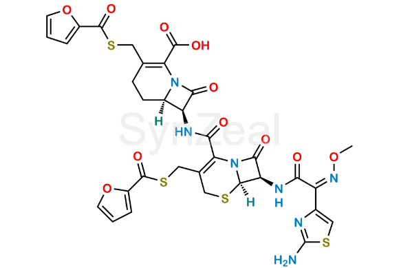 Nome Químico: (6R,7S)-7-{(6R,7R)-7-[(Z)-2-(2-Aminothiazol-4-yl)-2-(methoxyimino)acetamido]-3-[(furan-2-carbonylthio)methyl]-8-oxo-5-thia-1-azabicyclo[4.2.0]oct-2-enecarboxamido}-3-[(furan-2-carbonylthio)methyl]-8-oxo-1-azabicyclo[4.2.0]oct-2-ene-2-carboxylic acid (as per USP)