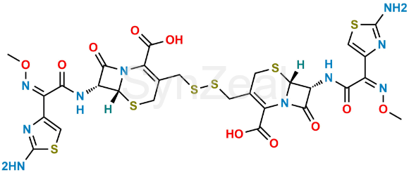 Nome Químico: (6R,6′R,7R,7′R,Z)-3,3′-[Dithiobis(methylene)]bis{7-[(Z)-2-(2-aminothiazol-4-yl)-2-(methoxyimino)acetamido]-8-oxo-5-thia-1-azabicyclo[4.2.0]oct-2-ene-2-carboxylic acid} (as per USP)