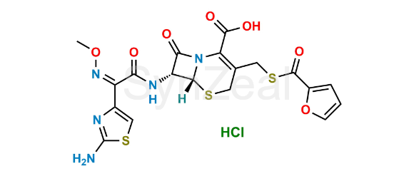 Nome Químico: 5-Thia-1-azabicyclo[4.2.0]oct-2-ene-2-carboxylic acid, 7-[[(2-amino-4-thiazolyl)(methoxyimino)acetyl]amino]-3-[[(2-furanylcarbonyl)thio]methyl]-8-oxo-, monohydrochloride, [6R-[6α,7β(Z)]]- (as per USP)
