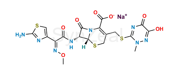 Nome Químico: Sodium (6R,7R)-7-((Z)-2-(2-aminothiazol-4-yl)-2-(methoxyimino)acetamido)-3-(((2-methyl-6-oxido-5-oxo-2,5-dihydro-1,2,4-triazin-3-yl)thio)methyl)-8-oxo-5-thia-1-azabicyclo[4.2.0]oct-2-ene-2-carboxylate