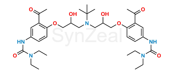Nome Químico: N-[3-Acetyl-4-[(2Ξ)-3-[[(2Ξ)-3-[2-acetyl-4-[(diethylcarbamoyl)amino]phenoxy]-2-hydroxypropyl](tert-butyl)amino]-2-hydroxypropoxy]phenyl]-N′,N′-diethylurea (as per EP)