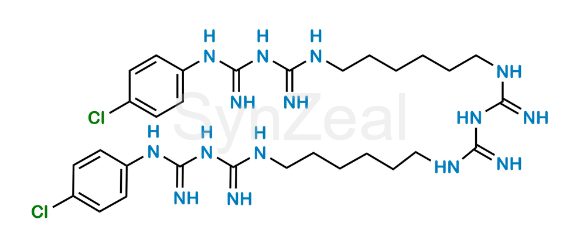 Nome Químico: N,N′-[Azanediylbis(carbonimidoylazanediylhexane-6,1-diyl)]bis[N-(4-chlorophenyl)imidodicarbonimidicdiamide] (as per EP) ; 1,5-Bis[5-(4-chlorophenyl)biguanidylhexyl]biguanide (as per USP)