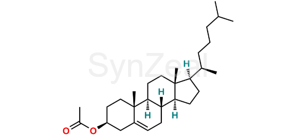 Cholesterol Acetate is chemically (3S,8S,9S,10R,13R,14S,17R)-10,13-dimethyl-17-((R)-6-methylheptan-2-yl)-2,3,4,7,8,9,10,11,12,13,14,15,16,17-tetradecahydro-1H-cyclopenta[a]phenanthren-3-yl acetate. Cholesterol Acetate is supplied with detailed characterization data compliant with regulatory guideline. Cholesterol Acetate can be used for the analytical method development, method validation (AMV), Quality Controlled (QC) application for Abbreviated New Drug Application (ANDA) or during commercial production of Cholesterol.