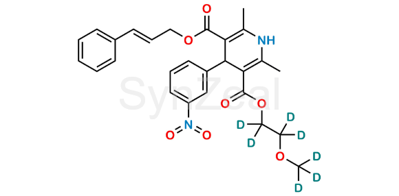 Nome Químico: 3-Cinnamyl 5-(2-(methoxy-d3)ethyl-1,1,2,2-d4) 2,6-dimethyl-4-(3-nitrophenyl)-1,4-dihydropyridine-3,5-dicarboxylate