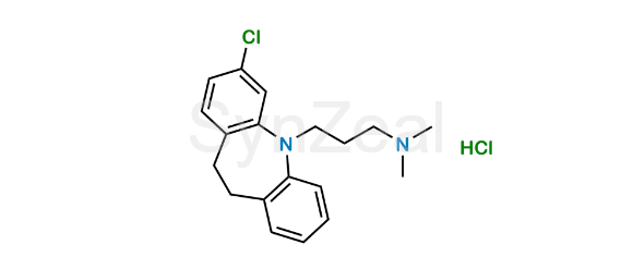 Nome Químico: 3-(3-Chloro-10,11-dihydro-5H-dibenzo[b,f]azepin-5-yl)-N,N-dimethylpropan-1-amine hydrochloride (as per EP) ; 3-Chloro-5-[3-(dimethylamino)propyl]-10,11-dihydro-5H-dibenz[b,f]azepine monohydrochloride (as per USP)