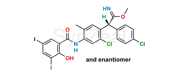 Nome Químico: Methyl (2RS)-2-[2-chloro-4-[(2-hydroxy-3,5-diiodobenzoyl)amino]-5-methylphenyl]-2-(4-chlorophenyl)acetimidate (as per EP)