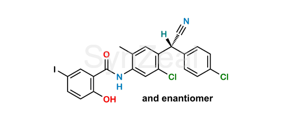 Closantel EP Impurity I is chemically N-[5-chloro-4-[(RS)-(4-chlorophenyl)cyanomethyl]-2-methylphenyl]-2-hydroxy-5-iodobenzamide (as per EP). Closantel EP Impurity I is supplied with detailed characterization data compliant with regulatory guideline. Closantel EP Impurity I can be used for the analytical method development, method validation (AMV), Quality Controlled (QC) application for Abbreviated New Drug Application (ANDA) or during commercial production of Closantel.
