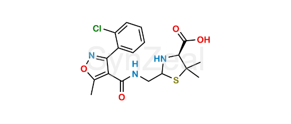 Nome Químico: (2RS,4S)-2-[[[[3-(2-chlorophenyl)-5-methyl-1,2-oxazol-4-yl]carbonyl]amino]methyl]-5,5-dimethyl-1,3-thiazolidine-4-carboxylic acid (as per EP) ; (4S)-2-{[3-(2-Chlorophenyl)-5-methylisoxazole-4-carboxamido]methyl}-5,5-dimethylthiazolidine-4-carboxylic acid (as per USP)