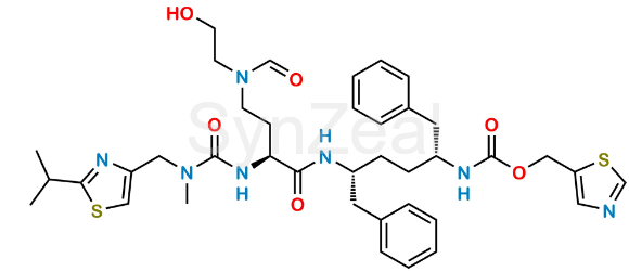 Nome Químico: Thiazol-5-ylmethyl ((2R,5R)-5-((S)-4-(N-(2-hydroxyethyl)formamido)-2-(3-((2-isopropylthiazol-4-yl)methyl)-3-methylureido)butanamido)-1,6-diphenylhexan-2-yl)carbamate