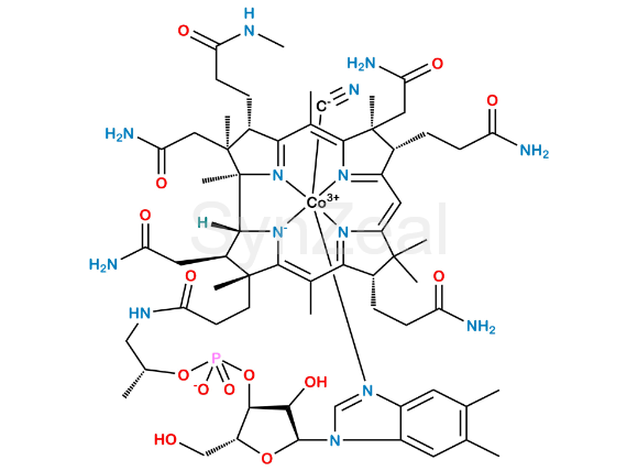 Cyanocobalamin EP Impurity C is chemically Coα-[α-(5,6-dimethylbenzimidazolyl)]-Coβ-cyano-b-N-methylcobamide (as per EP). It is also known as b-N-methylcyanocobalamin, 34-Methylcyanocobalamin (EP). Cyanocobalamin EP Impurity C is supplied with detailed characterization data compliant with regulatory guideline. Cyanocobalamin EP Impurity C can be used for the analytical method development, method validation (AMV), Quality Controlled (QC) application for Abbreviated New Drug Application (ANDA) or during commercial production of Cyanocobalamin.