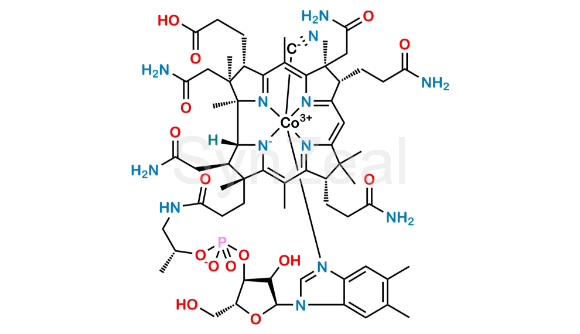 Cyanocobalamin EP Impurity D is chemically Coα-[α-(5,6-dimethylbenzimidazolyl)]-Coβ-cyanocobamic a,c,d,e,g-pentaamide (as per EP). It is also known as Cyanocobalamin b-monocarboxylic acid, 32-Carboxycyanocobalamin (EP). Cyanocobalamin EP Impurity D is supplied with detailed characterization data compliant with regulatory guideline. Cyanocobalamin EP Impurity D can be used for the analytical method development, method validation (AMV), Quality Controlled (QC) application for Abbreviated New Drug Application (ANDA) or during commercial production of Cyanocobalamin.