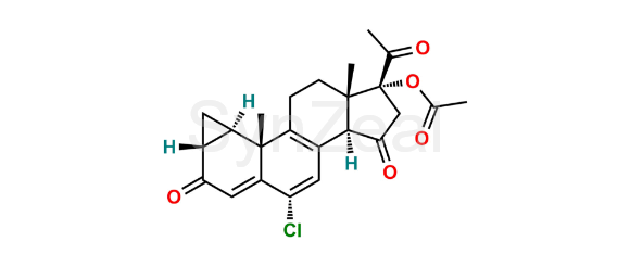 Nome Químico: (2aR,3aR,3bR,5aS,6R,8aS)-6-acetyl-10-chloro-3b,5a-dimethyl-2,8-dioxo-2,2a,3,3a,3b,4,5,5a,6,7,8,8a-dodecahydrocyclopenta[a]cyclopropa[g]phenanthren-6-yl acetate