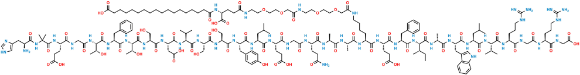 Sorrisos: N[C@H](C(NC(C)(C)C(N[C@@H](CCC(O)=O)C(NCC(N[C@@H]([C@@H](C)O)C(N[C@@H](CC1=CC=CC=C1)C(N[C@@H]([C@@H](C)O)C(N[C@@H](CO)C(N[C@@H](CC(O)=O)C(N[C@@H](C(C)C)C(N[C@@H](CO)C(N[C@@H](CO)C(N[C@@H](CC2=CC=C(O)C=C2)C(N[C@@H](CC(C)C)C(N[C@@H](CCC(O)=O)C(NCC(N[C@@H](CCC(N)=O)C(N[C@@H](C)C(N[C@@H](C)C(N[C@@H](CCCCNC(COCCOCCNC(COCCOCCNC(CC[C@H](C(O)=O)NC(CCCCCCCCCCCCCCCCC(O)=O)=O)=O)=O)=O)C(N[C@@H](CCC(O)=O)C(N[C@@H](CC3=CC=CC=C3)C(N[C@@H]([C@@H](C)CC)C(N[C@H](C)C(N[C@@H](CC4=CNC5=C4C=CC=C5)C(N[C@@H](CC(C)C)C(N[C@@H](C(C)C)C(N[C@@H](CCCNC(N)=N)C(NCC(N[C@@H](CCCNC(N)=N)C(NCC(O)=O)=O)=O)=O)=O)=O)=O)=O)=O)=O)=O)=O)=O)=O)=O)=O)=O)=O)=O)=O)=O)=O)=O)=O)=O)=O)=O)=O)=O)=O)=O)CC6=CNC=N6