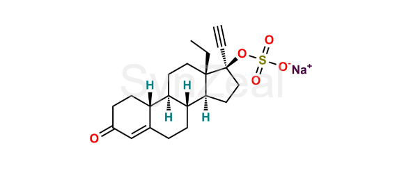 D-(-)-Norgestrel Sulfate Sodium Salt is chemically Sodium (8R,9S,10R,13S,14S,17R)-13-ethyl-17-ethynyl-3-oxo-2,3,6,7,8,9,10,11,12,13,14,15,16,17-tetradecahydro-1H-cyclopenta[a]phenanthren-17-yl sulfate. It is also known as Levonorgestrel Sulfate Sodium Salt ; D-(-)-Norgestrel-17-sulfate Sodium Salt. D-(-)-Norgestrel Sulfate Sodium Salt is supplied with detailed characterization data compliant with regulatory guideline. D-(-)-Norgestrel Sulfate Sodium Salt can be used for the analytical method development, method validation (AMV), Quality Controlled (QC) application for Abbreviated New Drug Application (ANDA) or during commercial production of Levonorgestrel.