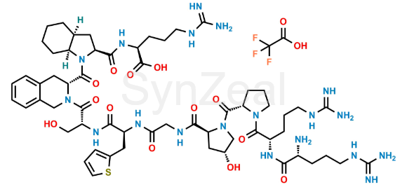 Nome Químico: ((2S,3aS,7aS)-1-((R)-2-(((S)-2-(2-((2S,4R)-1-(D-arginyl-L-arginyl-L-prolyl)-4-hydroxypyrrolidine-2-carboxamido)acetamido)-3-(thiophen-2-yl)propanoyl)-D-seryl)-1,2,3,4-tetrahydroisoquinoline-3-carbonyl)octahydro-1H-indole-2-carbonyl)-L-arginine compound with 2,2,2-trifluoroacetic acid (1:1)