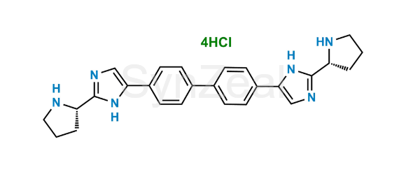Nome Químico: 4-(2-((R)-Pyrrolidin-2-yl)-1H-imidazol-5-yl)-4'-(2-((S)-pyrrolidin-2-yl)-1H-imidazol-5-yl)-1,1'-biphenyl tetrahydrochloride