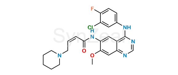 Dacomitinib Impurity 5 is chemically (E)-N-(7-methoxy-4-oxo-1,4-dihydroquinazolin-6-yl)-4-(piperidin-1-yl)but-2-enamide. Dacomitinib Impurity 5 is supplied with detailed characterization data compliant with regulatory guideline. Dacomitinib Impurity 5 can be used for the analytical method development, method validation (AMV), Quality Controlled (QC) application for Abbreviated New Drug Application (ANDA) or during commercial production of Dacomitinib.