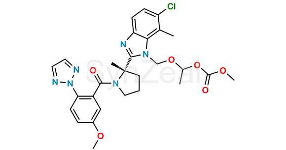 Nome Químico: 1-((6-chloro-2-((S)-1-(5-methoxy-2-(2H-1,2,3-triazol-2-yl)benzoyl)-2-methylpyrrolidin-2-yl)-7-methyl-1H-benzo[d]imidazol-1-yl)methoxy)ethyl methyl carbonate