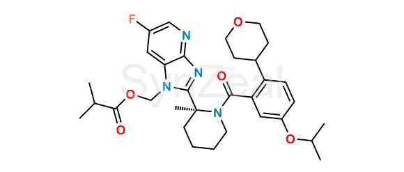 Nome Químico: (S)-(6-Fluoro-2-(1-(5-isopropoxy-2-(tetrahydro-2H-pyran-4-yl)benzoyl)-2-methylpiperidin-2-yl)-1H-imidazo[4,5-b]pyridin-1-yl)methyl isobutyrate